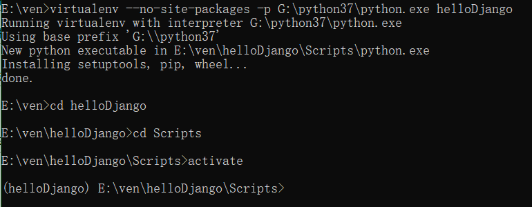 使用: virtualenv –no-site-packages -p 环境位置 项目名--no-site-packages:表示创建的环境为纯净环境,不安装其他的pip使用: